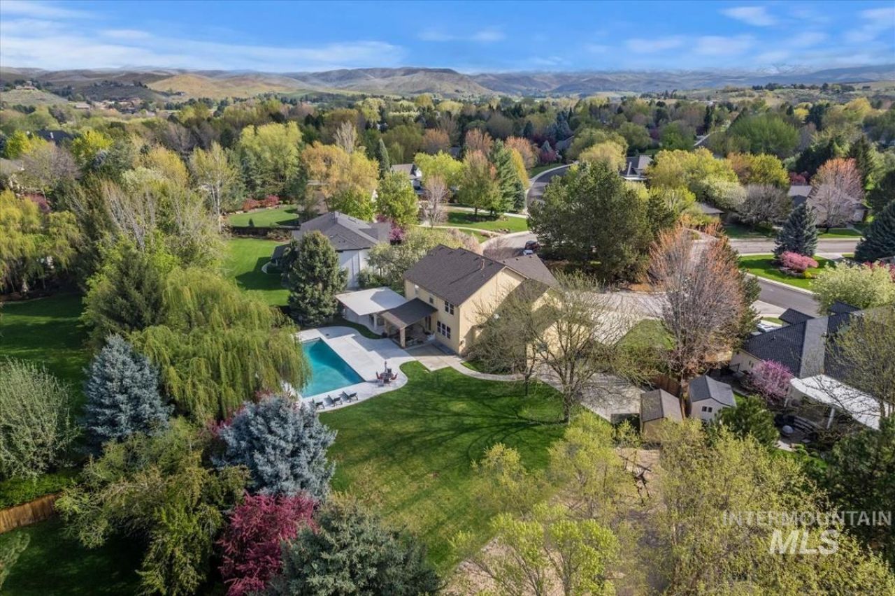 Tucked away in Lexington Hills, this exceptional property sits on a spacious .629-acre lot and offers 7 bedrooms and 4.5 baths. The backyard is truly a showstopper?featuring a stunning Gunite pool with two large water sheers cascading over stacked stone, a lush flowerbed border, and a refinished pool deck with diving board and electric cover. Entertain with ease under the covered patio or at the built-in outdoor kitchen and bar complete with BBQ and fridge. A separate graveled area includes a storage shed and cozy firepit for added versatility. Inside, hardwood floors flow through the main living areas, leading to a well-appointed kitchen with granite countertops, a large island with storage, and both casual and formal dining spaces. The primary suite is luxurious with Venetian plaster walls, plantation shutters, and a coffered ceiling. Downstairs, a generous open space is perfect for a media room or private living space. Recent updates include a new water heater (3/26), 6 person hot tub with new electrical spa pack, pump, head rests and cover (4/26), new pool pump (10/25), and pool decking, diving board and electric pool cover completed in 2024. Enjoy all that Lexington Hills has to offer, including over 44 acres of common areas, ponds, mature trees, miles of walking paths, and community amenities?all near the Boise River and foothills.